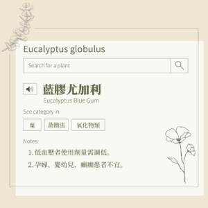 藍膠尤加利中的成分「1,8-桉油醇」具有收乾黏液的功能,同時也可以促進氣管內部纖毛擺動,讓過多的鼻涕或痰變得稀薄、更容易排出;鼻塞時也很適合用擴香或直接嗅吸精油的方式舒緩,但記得孕婦、嬰幼兒和癲癇患者請勿使用。